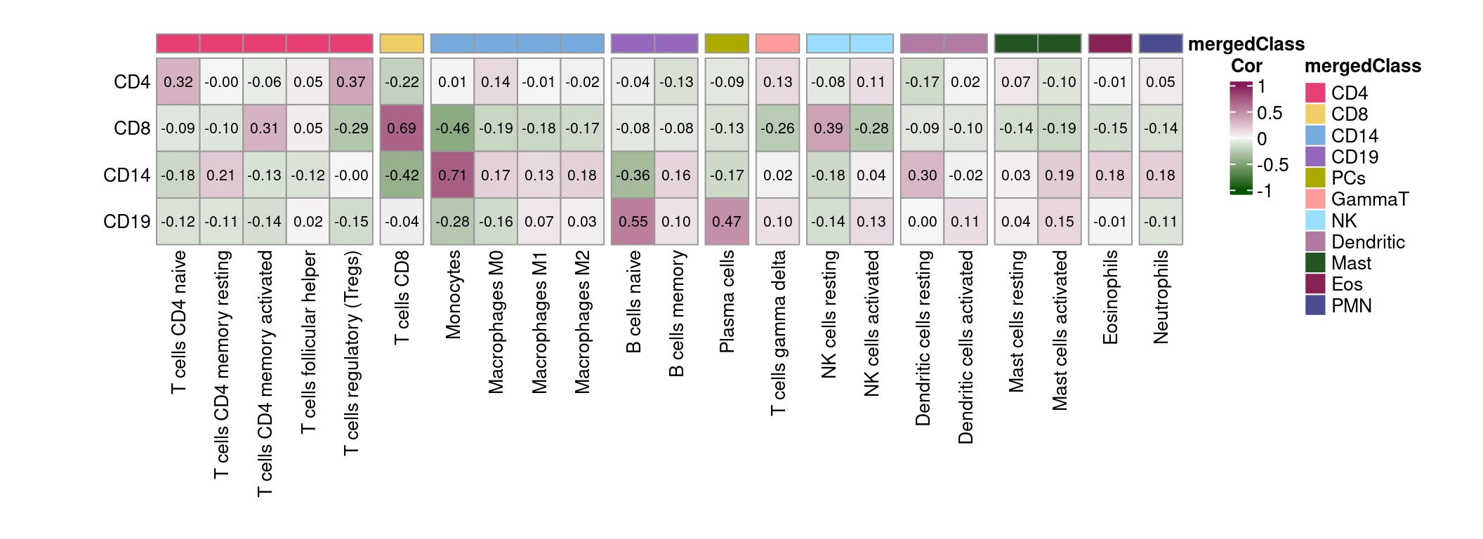 ## fractions merged into 4 cell types based on lm22merged